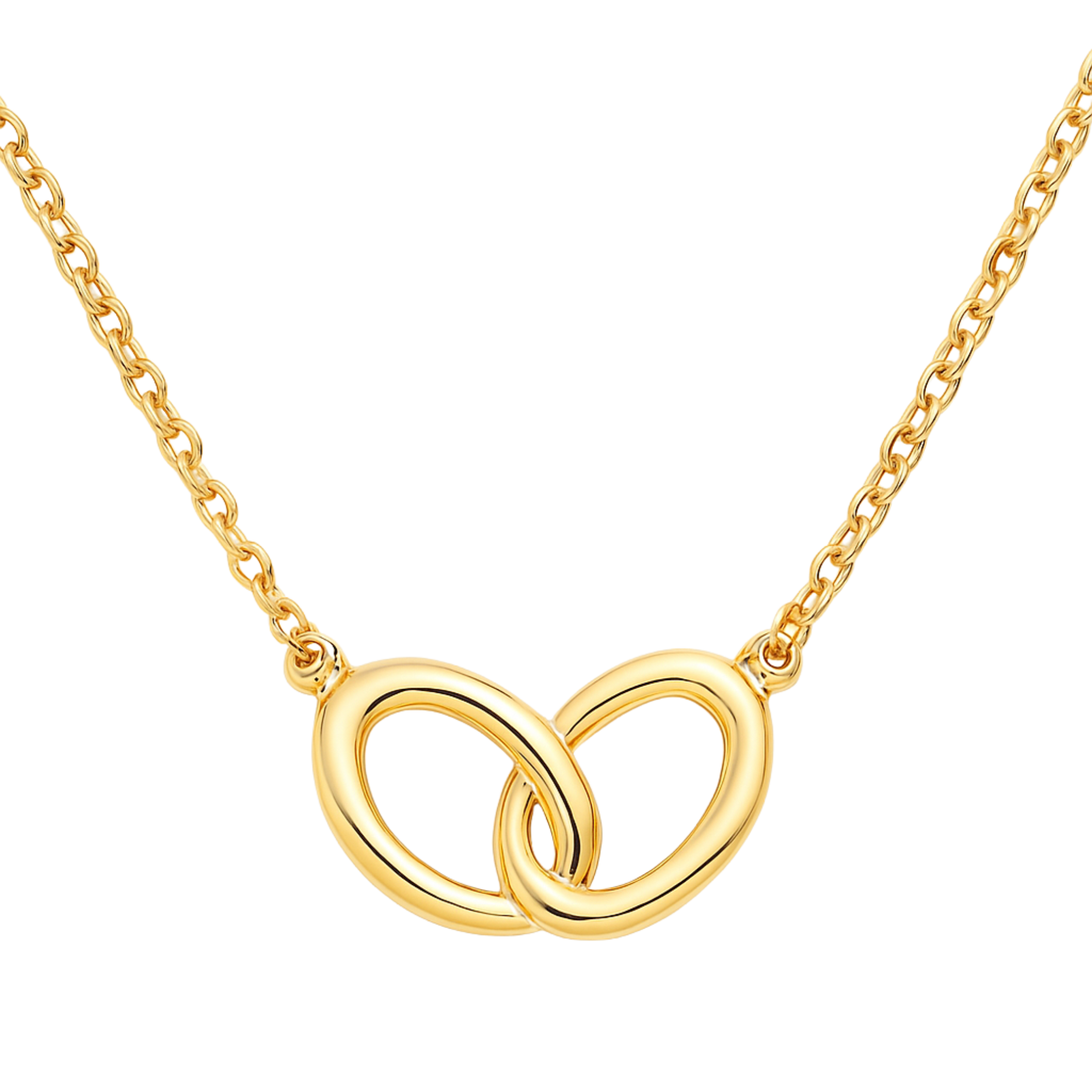 A modern symbol of connection. Elegant, understated, and beautifully meaningful — this 9ct Yellow Gold Interlocking Loops Necklace features two polished loops seamlessly linked together, representing unity, balance, and the bonds that last a lifetime.