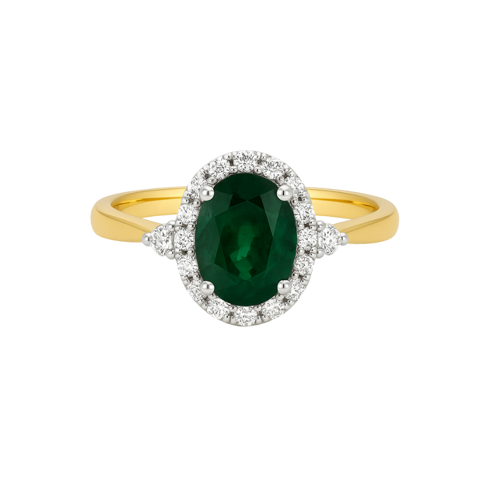 • Style: Oval halo with side-set diamonds