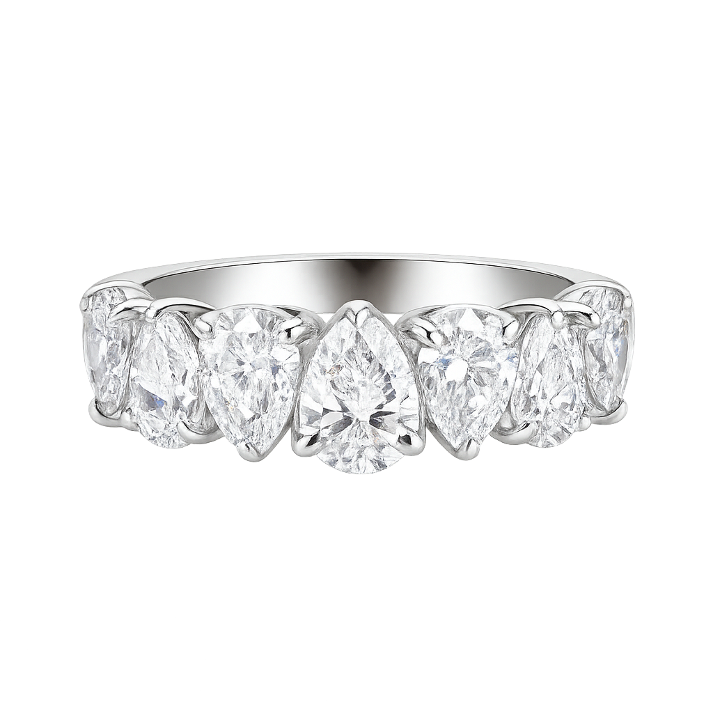 The Perfection is an exquisite ring featuring seven GIA certified D colour pear shaped diamonds, in alternative dimensions, set in platinum with a platinum band. A particularly beautiful gift for a special anniversary with a total weight of 2.14ct.