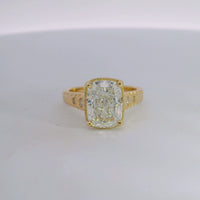 An ode to timeless romance, The Aurelia Ring is crafted for an extraordinary love story. At its heart lies a breathtaking 3.56ct elongated cushion cut diamond, its faceting pattern delicately balancing fire and brilliance to create a mesmerising play of light. The elongated silhouette enhances finger length, giving the stone a graceful, luminous presence that feels both classic and contemporary.