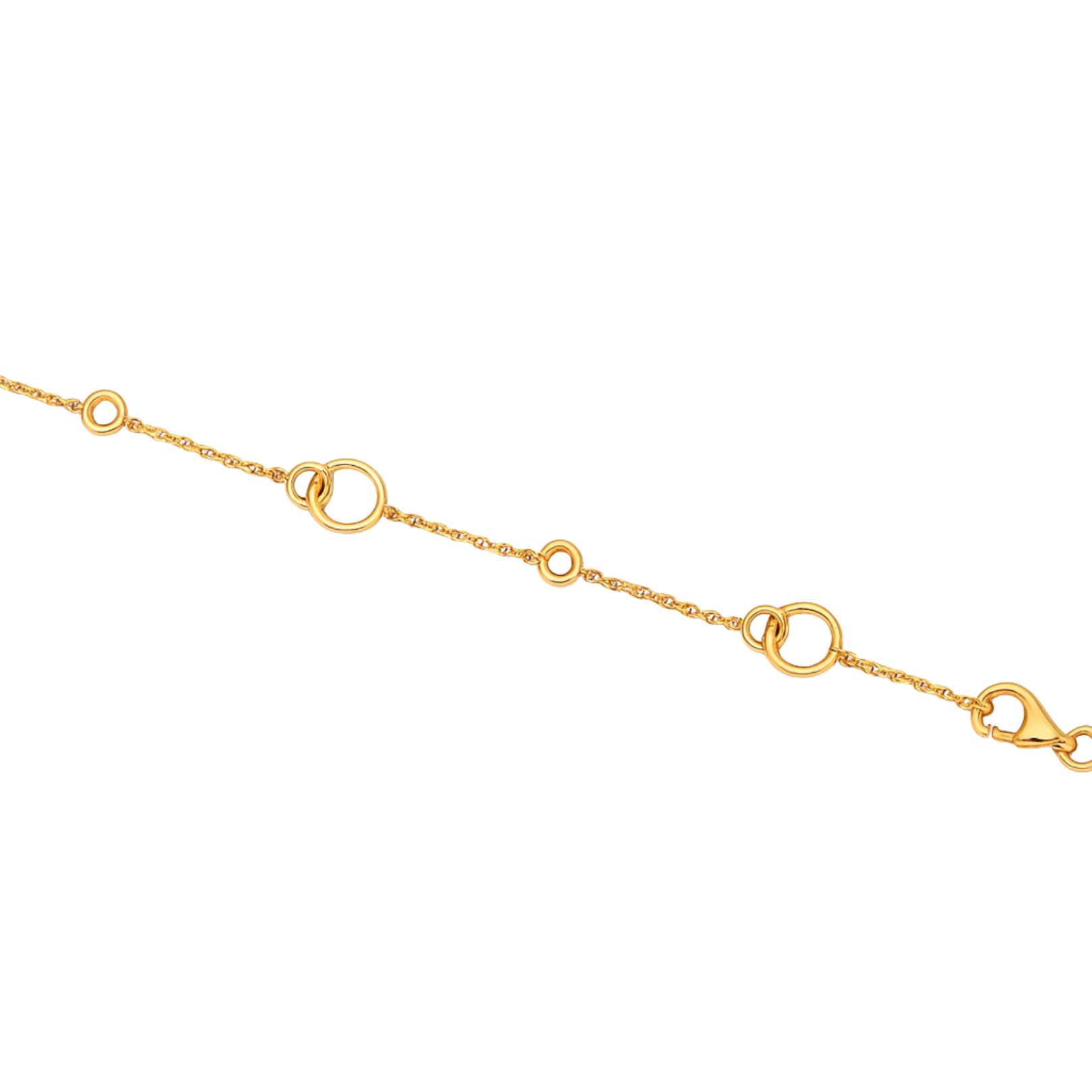 Interlocking, weightless, and quietly expressive — The Interlocking Bracelet features a constellation of polished gold circles suspended along a fine 9ct yellow gold chain. With varying loop sizes linked in organic rhythm, it evokes movement, connection, and balance.