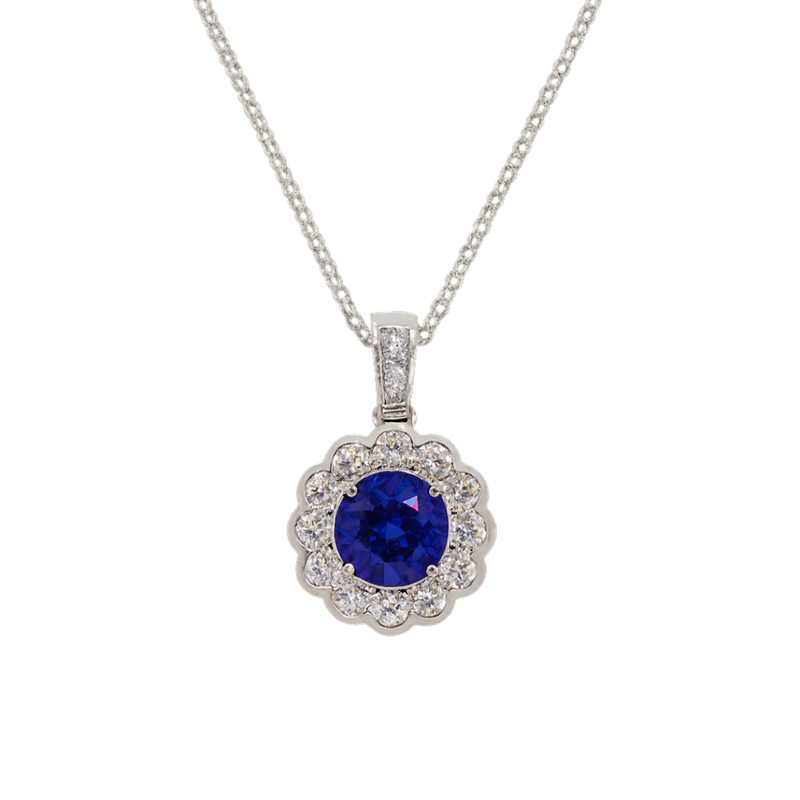 Princess Cut Diamond Halo Pendant with Diamond Chain