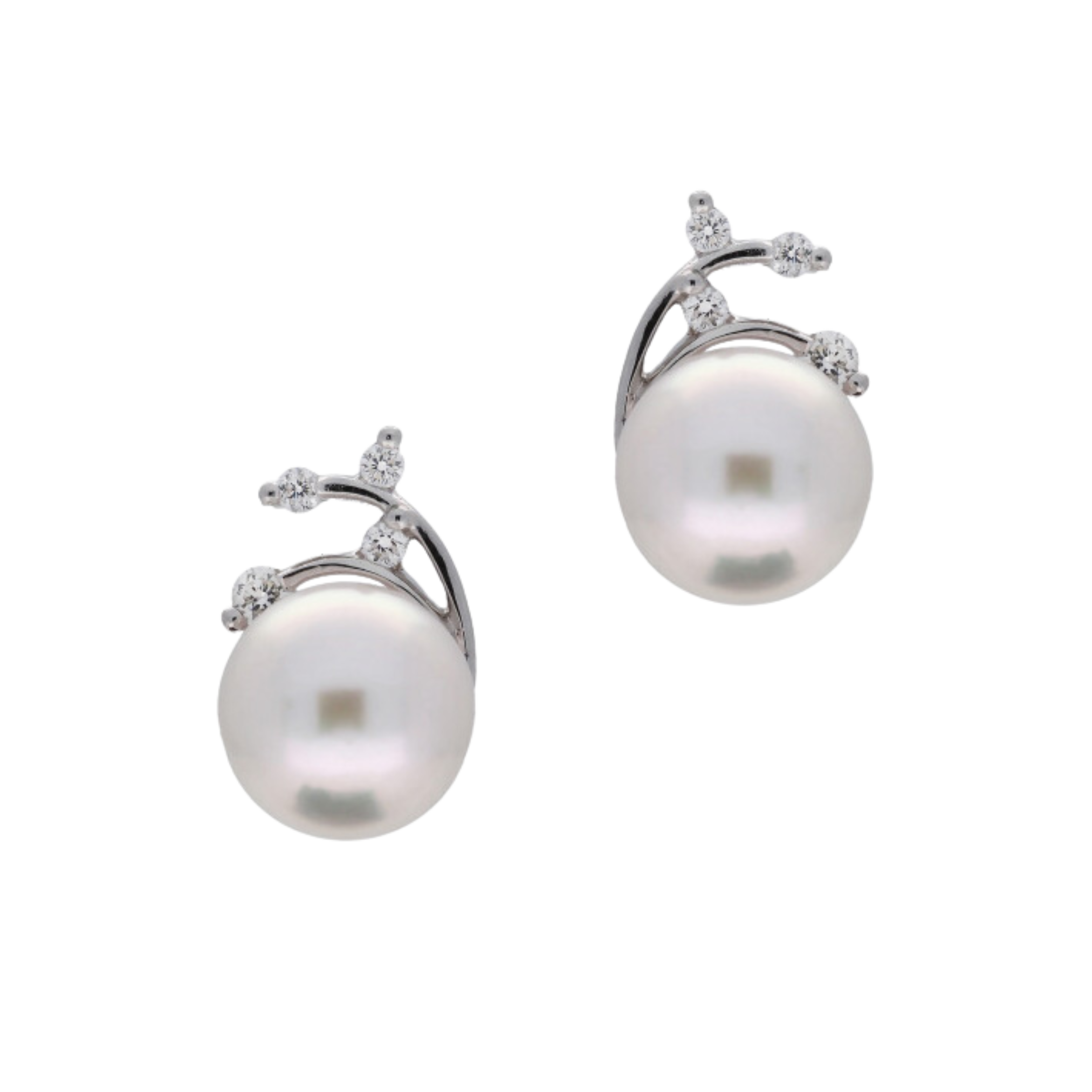 Akoya Pearl & Diamond Leaf Studs