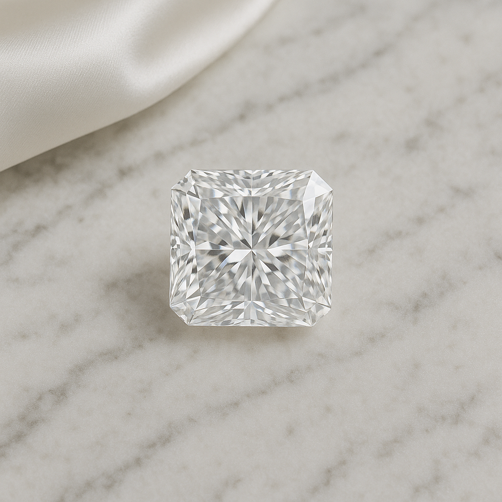 True to its name, a radiant-cut diamond—invented in 1977 by Henry Grossbard—catches the light in a big way. The radiant cut diamond is a modern favourite that combines the best of two worlds: the elegant silhouette of an emerald cut with the brilliant sparkle of a round diamond. With its trimmed corners and 70 light-reflecting facets, the radiant diamond offers a fiery brilliance that’s hard to match.