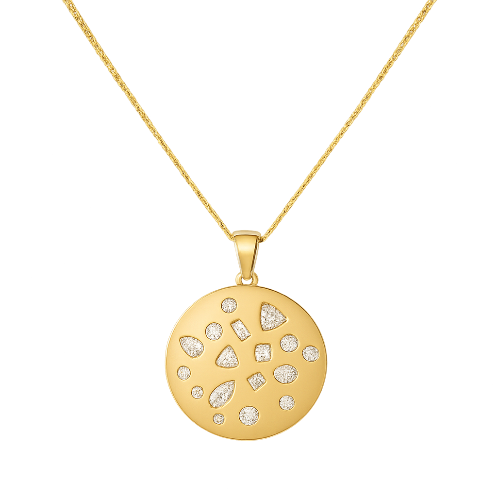 This exquisite piece draws inspiration from the mesmerising dispersion of light that occurs when the sun's rays hit a diamond, and is meticulously handcrafted at our Appleby workshop in Dublin City. Constructed from 18ct gold, the pendant boasts shards of diamonds, totaling approximately 1.03ct in weight, making it a truly unique pendant.