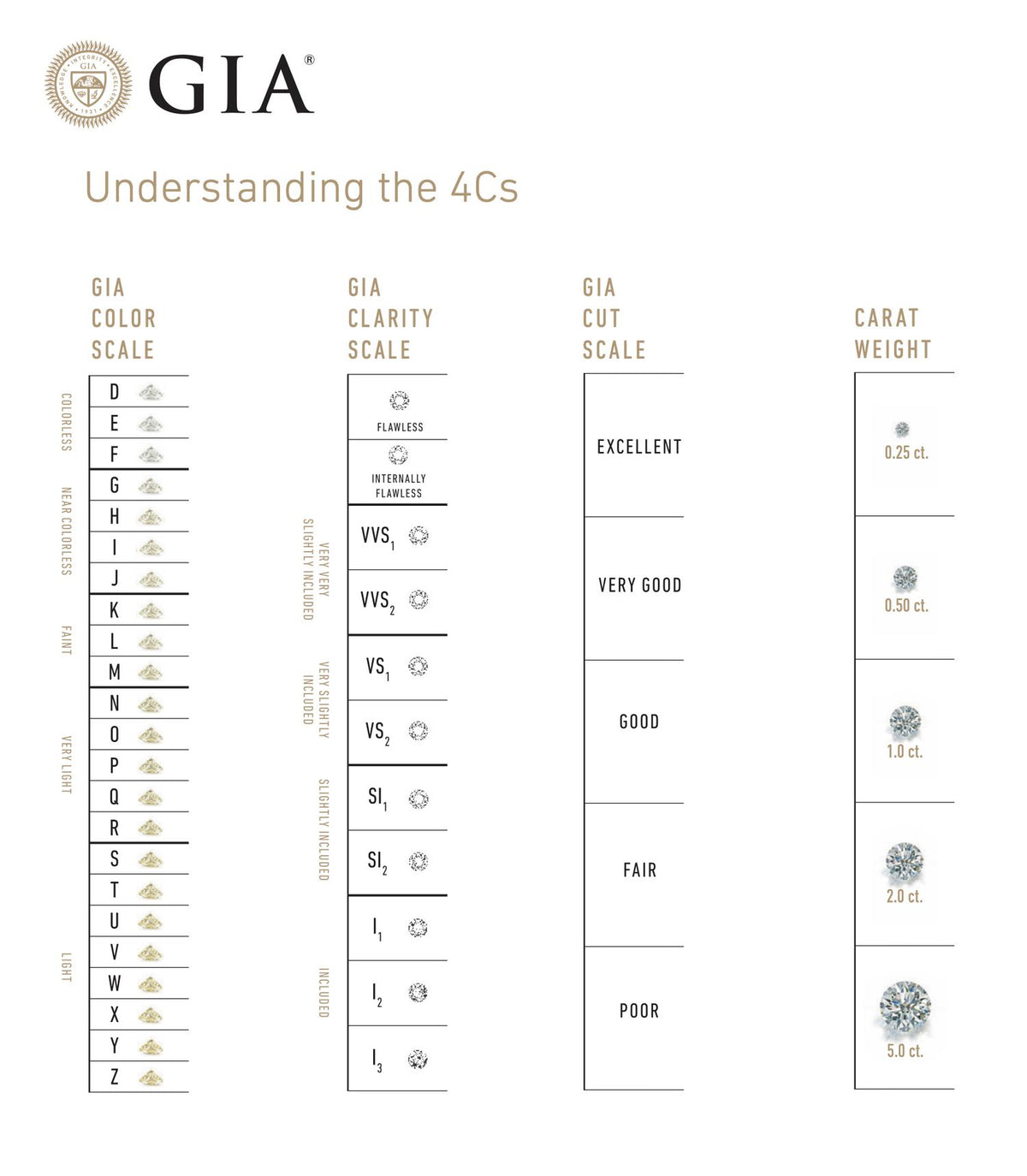 The price of an engagement ring depends on the ‘4 Cs’ — clarity, cut, colour and carat. Each of these influences value in different ways, and it is a common misconception that the size of the diamond alone is the most important factor. For example, a two carat diamond with a lower clarity or cut grade may cost less than a one-carat diamond that is colourless with an excellent cut rating.