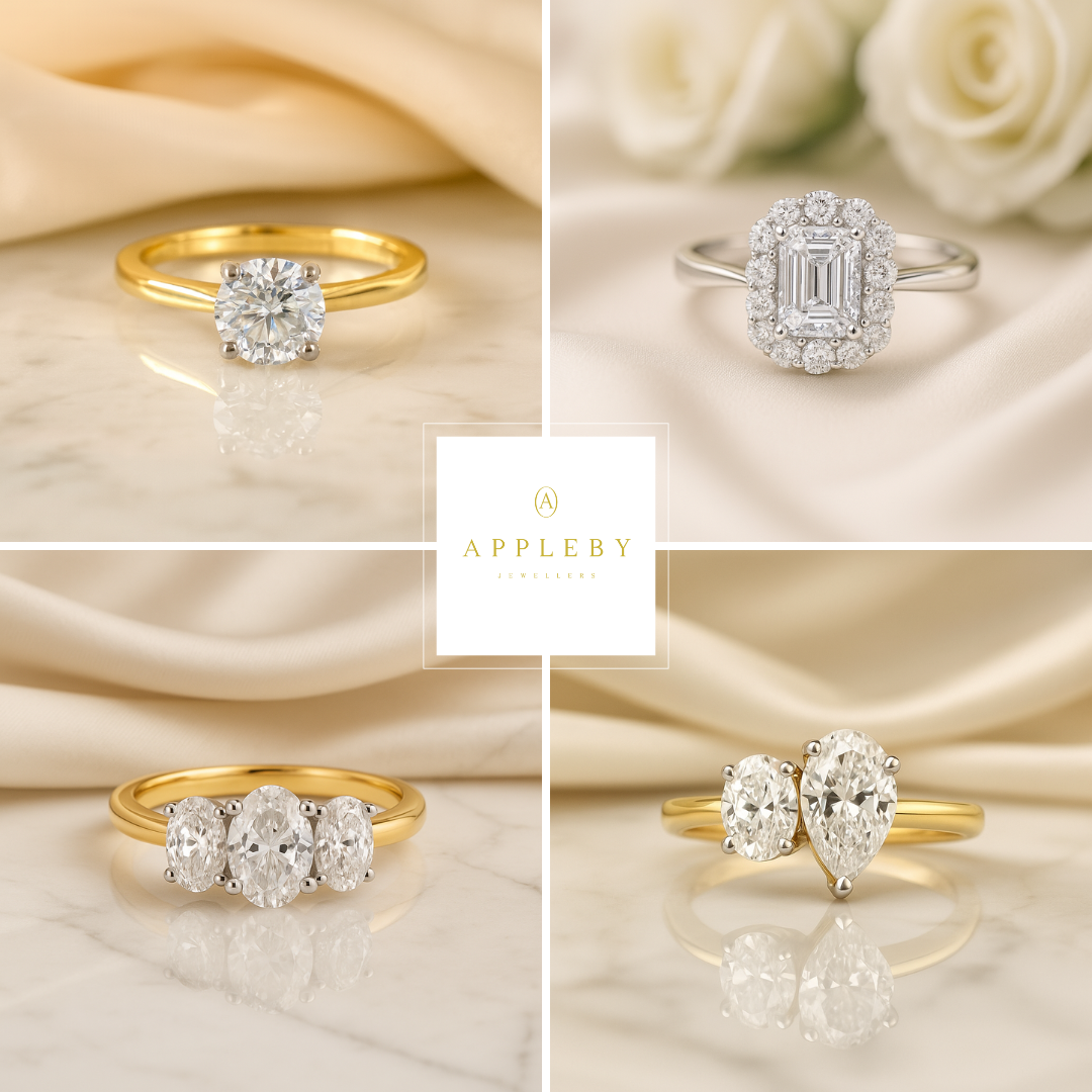 At Appleby, our highly experienced team take the time to explain these details and work with every budget and preference. Whether you are seeking a classic solitaire or a bespoke design, we ensure every customer leaves with the ring of their dreams — chosen with confidence and care.