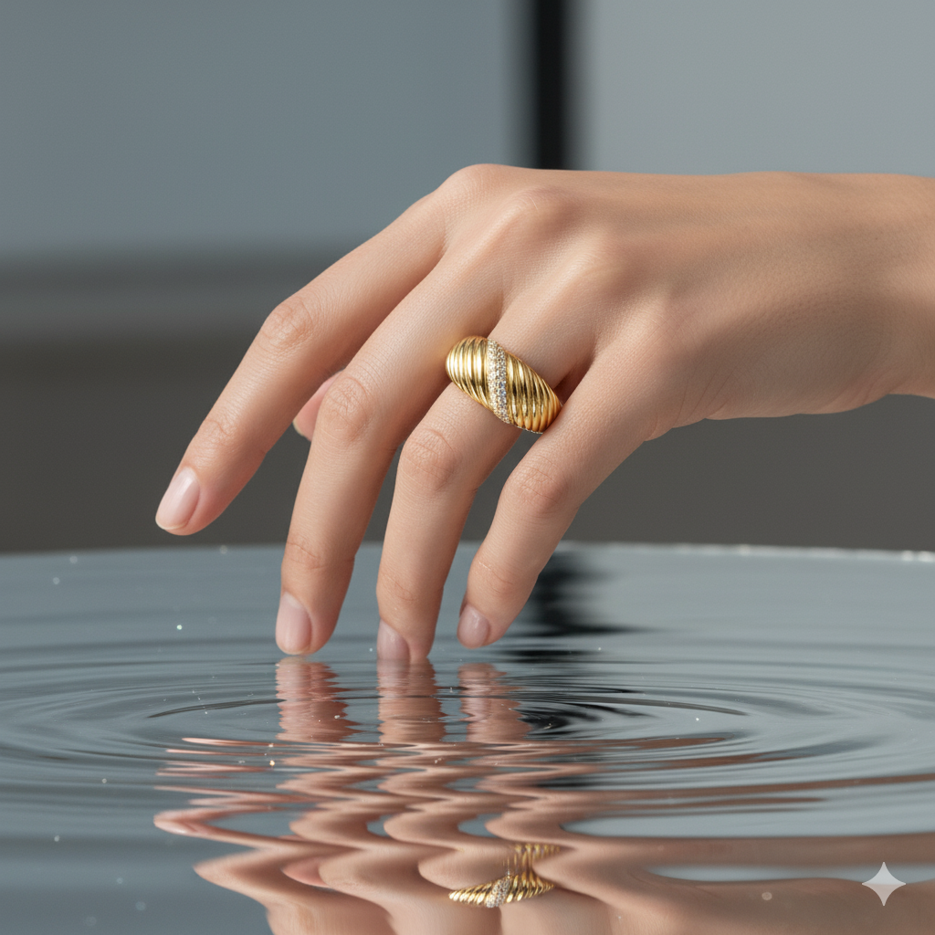 The Ripple Collection introduces a new signature silhouette to our Appleby jewellery line, fluid bands of 18ct gold accented with brilliant diamonds, each curve shaped with a goldsmith’s precision. Each design mirrors the tides: warm gold flowing in gentle arcs, diamonds glistening like droplets on the shore. These are jewels to be worn every day, loved for a lifetime, and passed on as modern heirlooms.